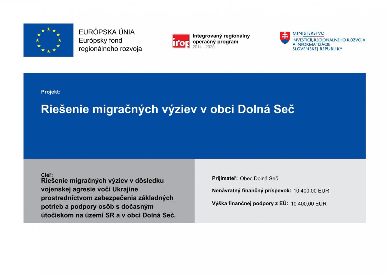 Projekt: Riešenie migračných výziev v obci Dolná Seč